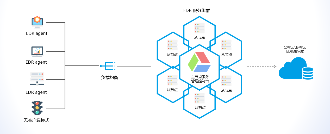 云涌終端安全檢測(cè)與響應(yīng)平臺(tái),由部署到終端負(fù)責(zé)收集上報(bào)數(shù)據(jù)的代理程序、以及負(fù)責(zé)數(shù)據(jù)分析、展示及響應(yīng)的中心服務(wù)組成。