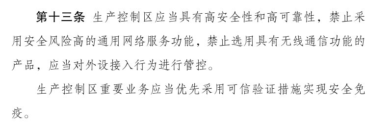 ? ? ? 第十三條明確提到:生產(chǎn)控制要業(yè)務(wù)應(yīng)當(dāng)優(yōu)先采用可信驗證措施實現(xiàn)安全免疫,第十六條明確提到:電力監(jiān)控系統(tǒng)優(yōu)先選用安全可信的產(chǎn)品和服務(wù),電力監(jiān)控系統(tǒng)投運(yùn)前應(yīng)當(dāng)進(jìn)行安全加固,包括主機(jī)加固、系統(tǒng)加固等。