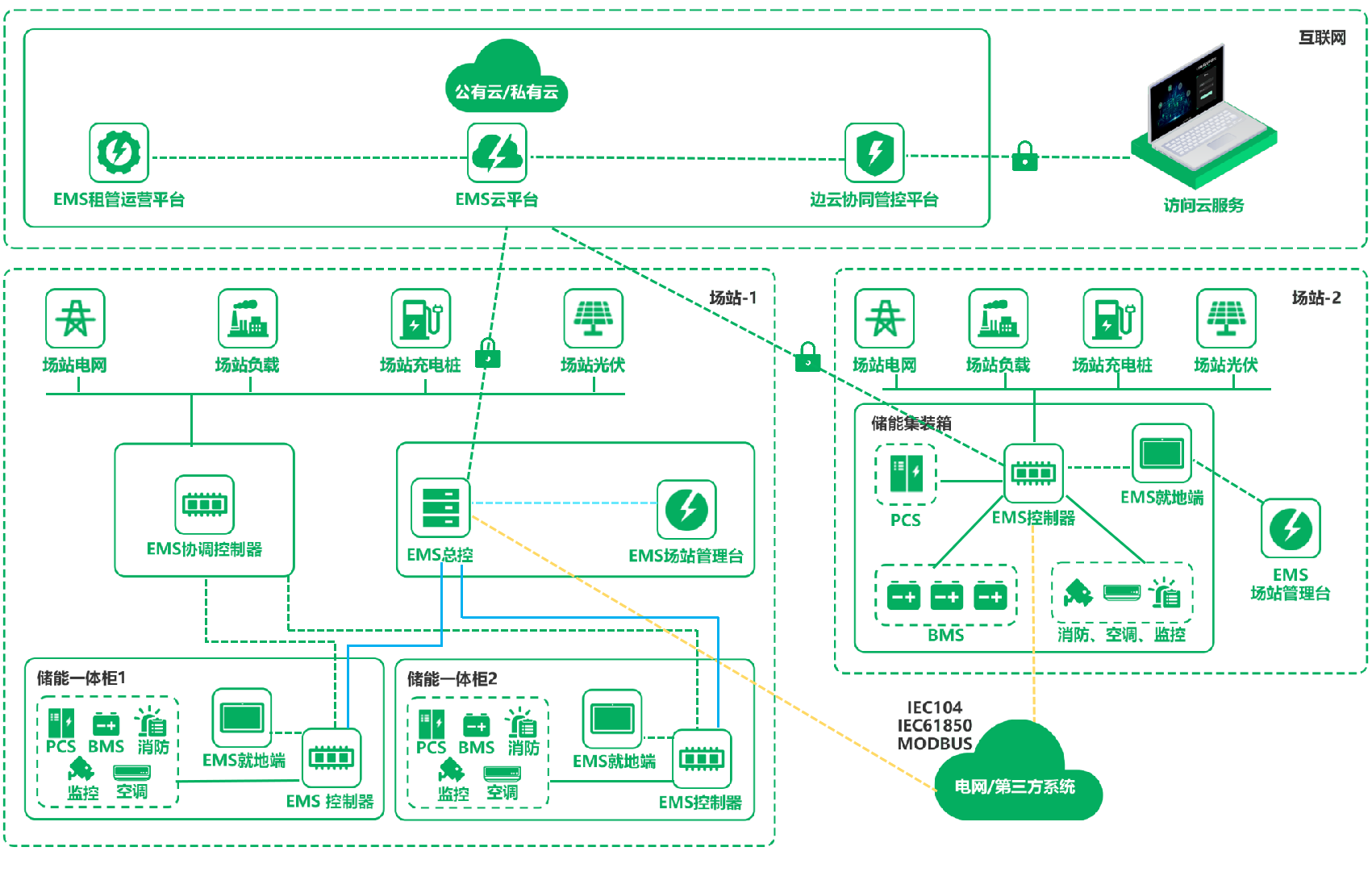 在智慧能源領(lǐng)域,云涌科技致力于EMS定制開(kāi)發(fā)多年,產(chǎn)品以標(biāo)準(zhǔn)的基于邊緣計(jì)算的物聯(lián)網(wǎng)平臺(tái)為底座,采用微服務(wù)軟件架構(gòu),利用四遙技術(shù)對(duì)儲(chǔ)能設(shè)備進(jìn)行實(shí)時(shí)的數(shù)據(jù)采集與控制,并通過(guò)大數(shù)據(jù)技術(shù)對(duì)場(chǎng)站的能耗數(shù)據(jù)進(jìn)行分析及預(yù)測(cè),幫助企業(yè)實(shí)時(shí)了解整個(gè)場(chǎng)站電力系統(tǒng)的運(yùn)行狀況,從而結(jié)合系統(tǒng)策略,實(shí)現(xiàn)對(duì)儲(chǔ)能系統(tǒng)各個(gè)設(shè)備的全生命周期管理。