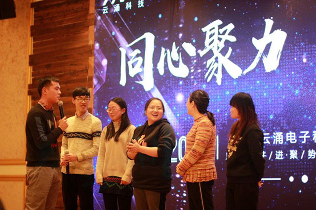 下午四點(diǎn)公司在泰州鵬欣大酒店隆重舉行了2019年云涌科技年會(huì),年會(huì)主題為"同心聚力,共創(chuàng)未來(lái)"。公司董事長(zhǎng)高南在會(huì)議中總結(jié)了過(guò)去一年的輝煌成績(jī),同時(shí)謀劃了未來(lái)云涌科技的技術(shù)及產(chǎn)品方向。