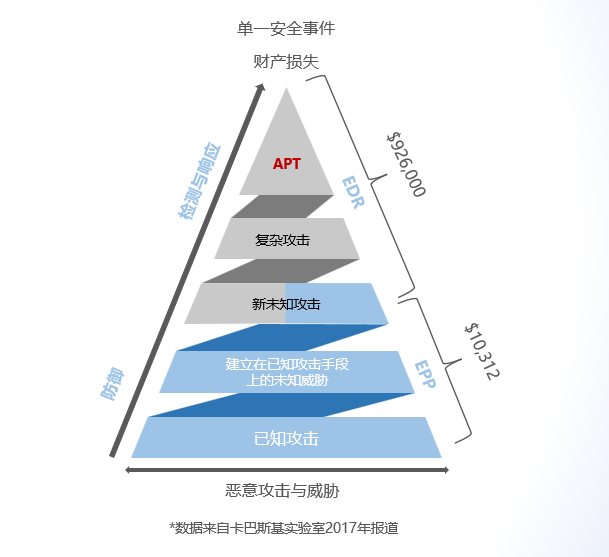 傳統(tǒng)的端點(diǎn)安全防護(hù)主要是靠殺毒軟件,通過病毒特征碼匹配進(jìn)行本地查殺,屬于單機(jī)被動(dòng)防御產(chǎn)品。之后的EPP(端點(diǎn)保護(hù)平臺(tái))雖然作為平臺(tái)級(jí)端點(diǎn)主動(dòng)防御解決方案并在企業(yè)廣泛應(yīng)用,但該產(chǎn)品還是采用了防御型技術(shù),難以應(yīng)對(duì)復(fù)雜攻擊和高級(jí)威脅。隨著終端泛在化,未來所有的網(wǎng)絡(luò)節(jié)點(diǎn)都將是終端,端點(diǎn)安全的關(guān)注點(diǎn),已經(jīng)從單一安全防御轉(zhuǎn)移到更注重威脅發(fā)現(xiàn)和自動(dòng)化處置能力,對(duì)自動(dòng)化威脅檢測(cè)、響應(yīng)、處理、運(yùn)維能力要求越來越高。在此基礎(chǔ)上,EDR應(yīng)運(yùn)而生。
