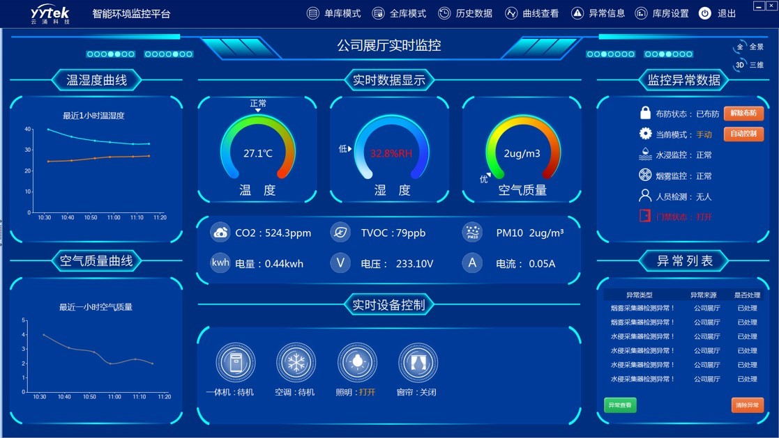整個檔案館庫房通過接入云涌科技智慧環(huán)控系統(tǒng),采集所有檔案室內的溫度、濕度、漏水、人員侵入等數(shù)據(jù),以便更好地通過自動或手動模式控制空調、除濕加濕凈化一體機、電動窗簾、燈光等智能設備,從而達到調節(jié)溫濕度及空氣凈化的目的;除此之外,智慧庫房還通過接入視頻監(jiān)控、門禁,實時掌握庫房人員進出情況,保證庫房內資料安全。