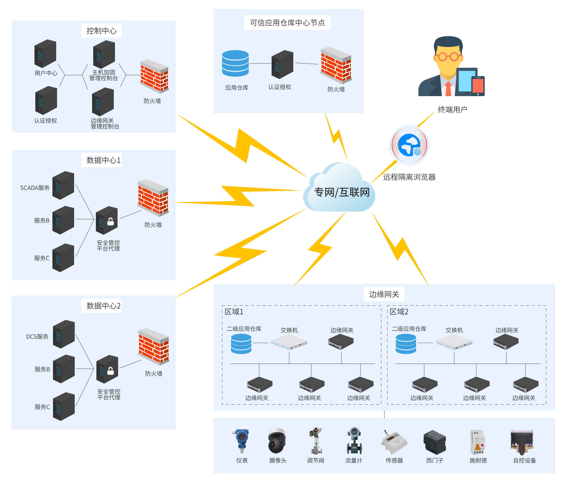 基于零信任的云邊端管控系統(tǒng)整體網(wǎng)絡拓撲圖